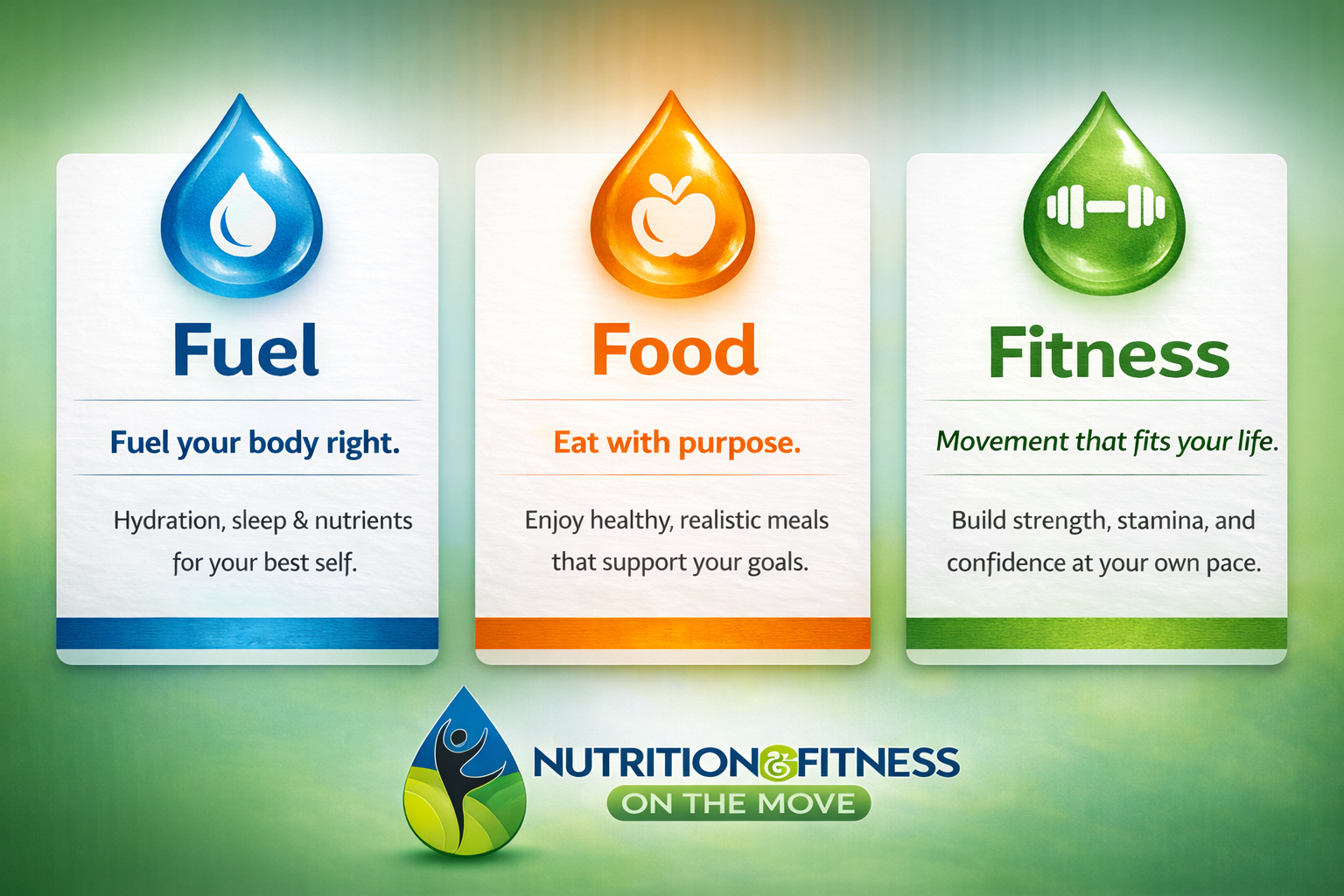 » Our Philosophy Our philosophy is simple: we meet you where you are — and we move forward with three core principles that strengthen everything we do: Fuel, Food, and Fitness. Now insert these three core principles I have enclosed a copy attached as well.